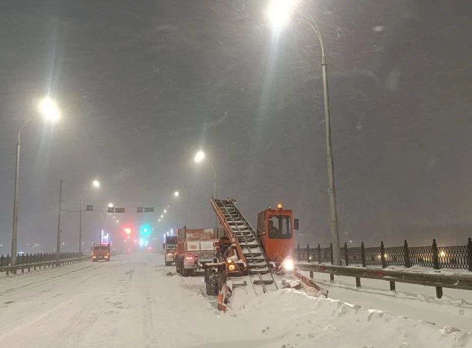 Ночью снегоуборочная техника работала на проезде ул.9 Января, 24 до ул. Каменская, пр. Ленина, ул. Соборная, Летнем вокзале, пр. Притомский, пр. Октябрьский, пр. Советский, ул. Орджоникидзе, ул. Волгоградская, ул. 62 Проезд.