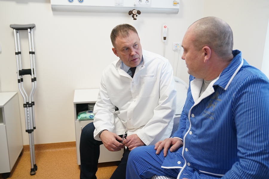 Илья Середюк в Юрге пообщался с участниками специальной военной операции, проходящими лечение и реабилитацию в многофункциональном госпитале для военнослужащих.